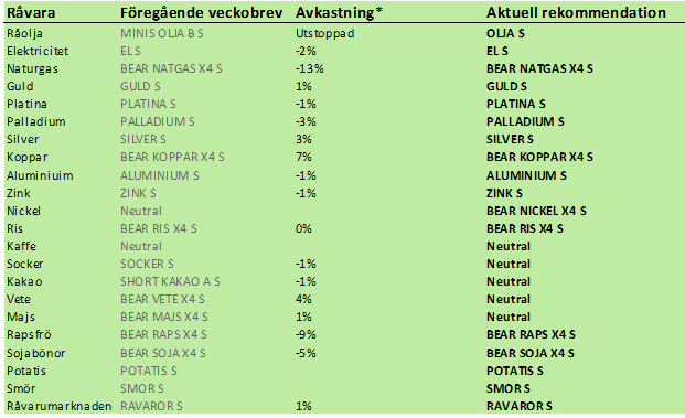 Vi går därför över från säljrekommendation till köprekommendation. Eftersom olja är en så viktig del av råvarumarknaden – och råvaruindex – innebär detta också ett motiv för placering i t ex index-certifikatet RAVAROR S, eller SEB:s nystartade råvaruindexfond, som följer samma index, SEB Commodity Index.