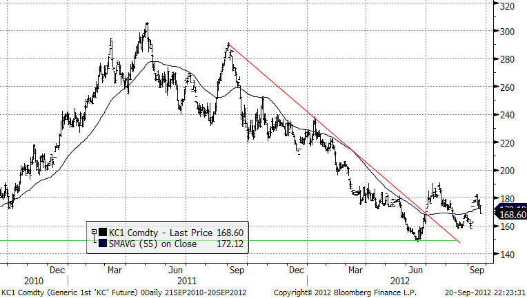 Kaffepriset har fortsatt att falla vilket till största del beror på att världens största kaffeproducent Brasilien har valt att gradvis sälja landets överskott av kaffe efter den senaste tidens prisuppgång. Som världens största kaffeodlande land står Brasilien för hela 25 procent av världens kaffeproduktion och ungefär 80 procent av landets produktion utgörs av arabicabönan.
