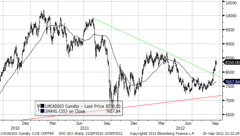 fundamentala situationen, och i många fall överstiger lagda budgetnivåer. Frågan är när (och om) industrin tvingas ”bita i det sura äpplet” och täcka in framtida behov. Centralbankerna visar att de menar allvar och stimulanserna fortsätter. Aktörerna väntar på mer från Kina. Mycket talar för en fortsatt stark trend i nästa vecka med test av nivåer upp mot $8500.