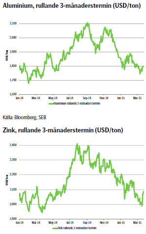 - I takt med att den fundamentala balansen förbättras bedöms priserna på aluminium och zink succesivt stärkas under året