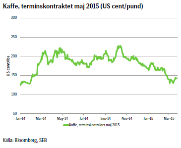 - Fundamentala faktorer pekar på ett sjunkande kaffepris på något längre sikt