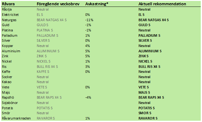 Vi rekommenderar att man går ur eventuella långa positioner i PLATINA S och lägger sig neutral. Däremot tycker vi fortfarande att PALLADIUM S kan vara köpvärt.