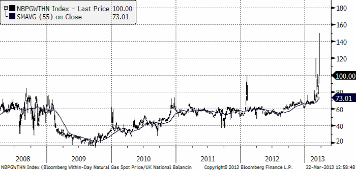 Vi erbjuder inte handel i små poster på den engelska naturgasmarknaden, men som vi ser är kylan just nu onormalt svår. Global temperatur håller dessutom på att bryta alla konfidensintervall nedåt från FN:s klimatpanels prognoser. De senaste årens energiproduktionsplanering som förutsatt varmare väder, kan, om temperaturen blir lägre leda till högre priser på marknaderna.