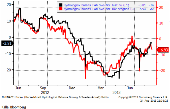 Hydrologisk balans har fortsatt att stiga, som vi ser i nedanstående diagram.