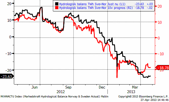 Den hydrologiska balansen har planat ut och prognosen har slutat falla och planat ut den också. Slutsatsen är alltså att vi ligger kvar i EL S.