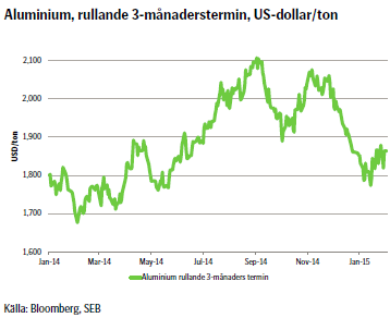 - Priset på aluminium blev påverkat av det kraftigt fallande kopparpriset under årets inledning. Aluminium har kommit längre i konsolideringsfasen och föll omotiverat mycket p.g.a. raset i kopparpriset