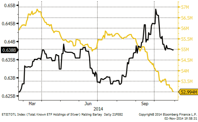 Investerare fortsätter att sälja av guldfonder och hittills i oktober även silverfonder.