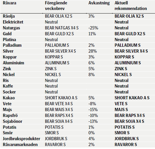 Vi fortsätter att på kort sikt rekommendera en kort position i silver med köp av BEAR SILVER X4 S.