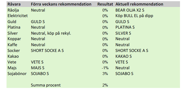 För spannmål och övriga jordbruksprodukter hänvisas till gårdagens nyhetsbrev.
