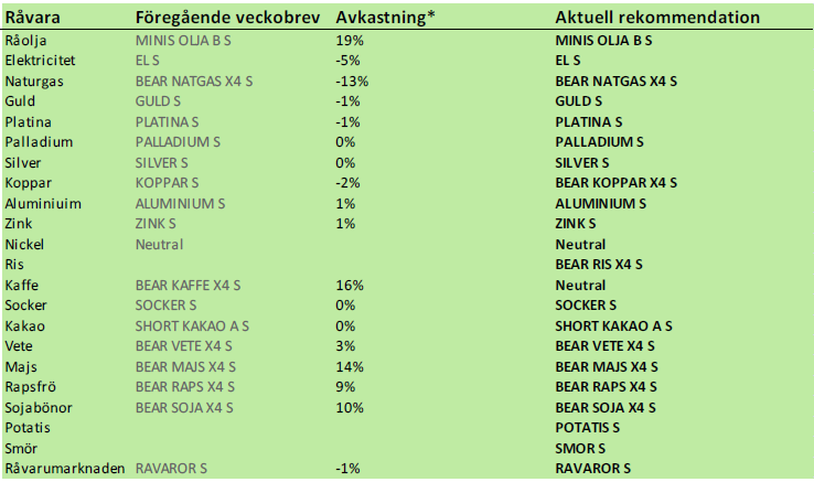 SEB-rekommenderade råvaror
