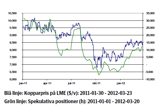 - Kinesisk fastighetsmarknad har kylts av något, vilket också varit avsikten med myndigheternas restriktivare penningpolitik. Ytterligare ekonomiska stimulanser är inte troliga för tillfället från kinesiska myndigheters håll, vilket verkar dämpande på kopparpriset.