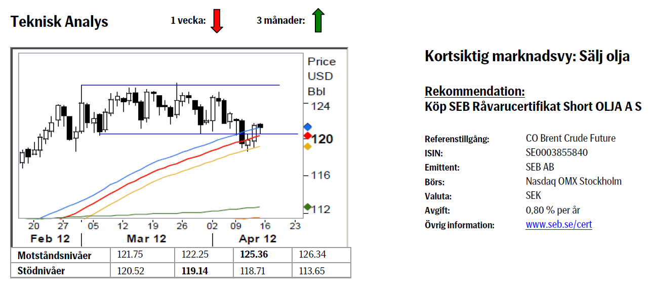 - Teknisk Analys: Marknaden bröt som förväntat ned ur toppformationen men har hittills fångats upp av köpare i 55dagars bandet. Det är möjligt att vi kommer att få se en hel del stötande o blötande innan nästa rörelse kommer. Men så länge vi inte stiger över 125,36 (bekräftelsepunkt för nya toppar) bör vi i slutändan falla ned igenom 55-dagarsbandet.