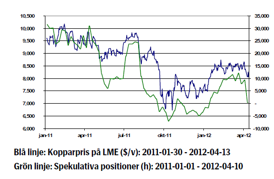 - Som man kan se i grafen till vänster har spekulanter kraftigt minskat sina positioner i koppar i samband med de senaste veckornas nedgångar.