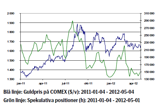 - I Europa är osäkerheten kring Spanien stor där ekonomin åter är i recession, dvs. ekonomin krymper för andra kvartalet i rad. En fråga som oroar marknaden är om Spanien kommet att behöva resurser från EU:s nödlånefaciliteter. Negativa nyheter kan snabbt skapa turbulens i marknaden. Den oro man ser i Europa har emellertid inte ökat intresset för guld som säker hamn. Guldet har snarare korrelerat positivt med övriga risktillgångar.