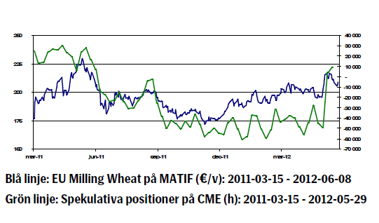 Det europeiska Matifvetet med novemberleverans föll tillbaka i fredags och bröt igenom stödnivån på 210 EUR. Förbättrade väderutsikter i Europa och Svartahavsområdet tillsammans med svag makrostatistik drog ned priset på kvarnvetet som sedan dess har pendlat mellan stödnivån 205 EUR och 208 EUR.