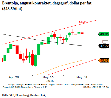 Valuta: Dollarn har fortsatt att stärkas något sedan förra veckan och undertonen, givet FED, bör fortsätta att vara fast. Noterbart är också att den kinesiska valutan försvagats på sistone vilket skulle kunna leda till en ytterligare lageruppbyggnad om försvagningen tros fortsätta. Pundet är naturligtvis fortsatt i stigande fokus ju närmare Brexit-omröstningen kommer.