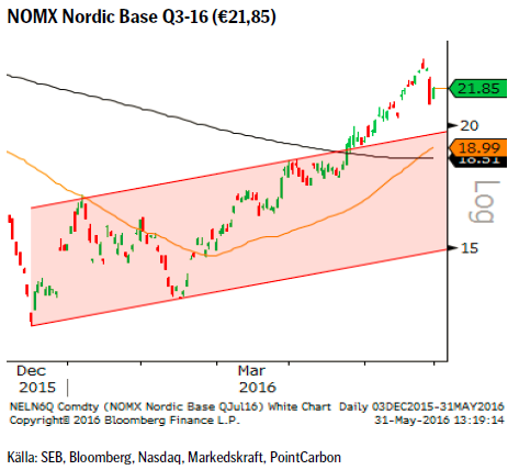- Elpriset (Kv3 2016) verkar just nu ha nått vägs ände givet måndagens nedgång.