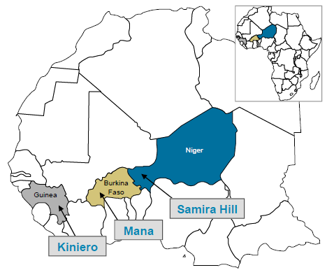 Semafo har idag tre guldgruvor i Västafrika: Mana i Burkina Faso, Samira Hill i Niger och Kiniero i Guinea. Mana-gruvan, som är Semafos flaggskepp, är en så kallad open pit-verksamhet, vilket är den allra enklaste formen av gruvdrift att bedriva. Den står idag för 180.000 av bolagets produktion om 261.000 troy ouce.