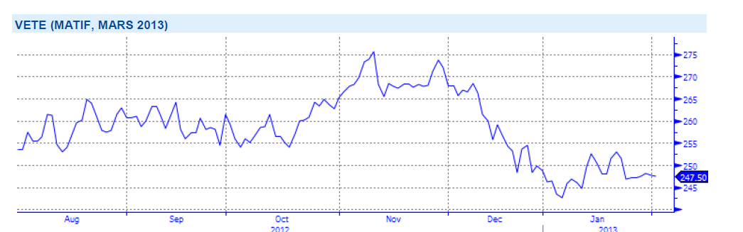 Priset på vete är svagt upp denna vecka. Än är det torrt och varmt för det amerikanska höstvetet, vilket gör att skicket på grödan fortsätter att försämras. I december månad var låga 25 procent av höstvetet i delstaten Kansas i skicket good/excellent, idag uppskattas samma siffra till rekordlåga 20 procent – vid samma tid förra året var motsvarande siffra mer normala 45 procent. Torrt väder väntas även nästa vecka och det kommer verkligen behövas en gynnsam vår för att grödorna ska återhämta sig någorlunda.