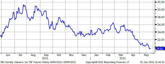 Det råder fortsättningsvis ovisshet om den Brasilianska skördens kommande exportvolym. Torka tidigare under säsongen kan påverka volymen samtidigt som det finns förväntningar på ökad volym tackvare större odlingsområden i landet. Regn fördröjer skördeprocessen och jämför man med Brasilianska skördevolymen samma månad förra året har man hittills endast skördat en tredjedel av den volymen. Brasiliens valuta Real har försvagats gentemot USD och handlade den 23/5 på treårs lägsta. Detta innebär att det är gynnsammare för landet att exportera sitt socker jämfört med en försäljning på den egna marknaden.