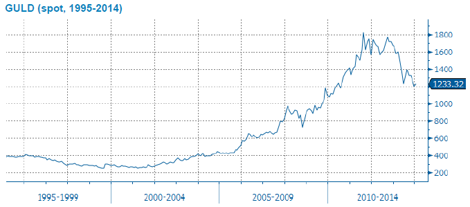 Som våra läsare vet har vi varit negativa på guld en längre tid – något som visat sig bli väldigt korrekt. Guldpriset föll under 2013 med hela 28 %, och utflödet ur börshandlade guldfonder (ETF) har varit obönhörligt, investeringar i guld-ETF:er har minskat med 33 %. Vår egen valutareserv i Riksbanken har tappat nästan 14 miljarder kronor i värde under året, och en lång rad guldgruvor och prospekteringsprojekt har fått stängas ner. Endast 1981 har varit ett sämre år i guldets historia, då med ett fall på nästan 33 %. Frågan vi alla ställer nu är naturligtvis ”kan det bli värre – eller vänder det nu?”