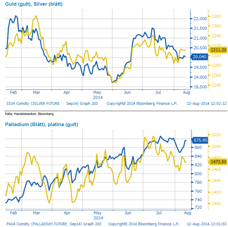 Under sommaren har dock råvarorna handlats relativt lite på makrodata och desto mer på den geopolitiska utvecklingen. För metallmarknaden är det Ryssland/Ukraina som är viktigast medan oljan handlas upp och ner med utvecklingen kring Irak i centrum.