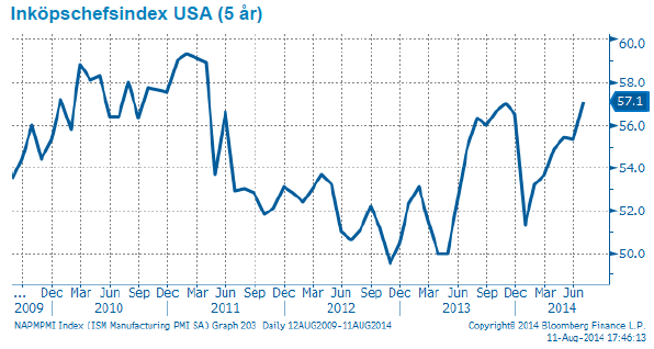 Makromässigt har sommarens data från USA varit stabil och något över förväntan, främst inköpschefsindex som sköt upp till årshögsta i juli ligger i en fin stigande trend efter bottenkänningen under den smällkalla februari.