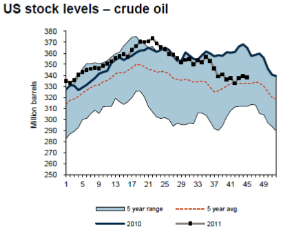 IEA (International Energy Agency) tog i torsdags ned sina estimat för den globala efterfrågan på olja med 70 000 fat/dag under 2011 och 20 000 fat/dag år 2012. Revisionen ansågs vara relativt försiktig av marknadens aktörer.