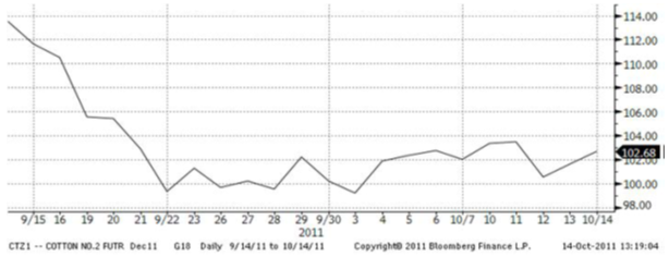 Data från USDA överraskade marknaden under veckan med högre produktion och högre utgående lager inom USA och globalt. Konsumtionssiffrorna backade mot föregående månad. Detta ledde till att marknaden backade något men priset studsade upp igen efter nyheten om Kinas import av bomull stigit med 26 procent på ett år. Kina står idag för ca 40 procent av den totala importen i världen. Temperaturerna kommer ligga över det normala den närmaste tiden med torrare klimat kring området i Texas.