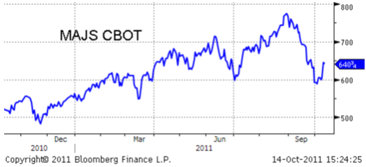 I slutet av förra veckan kunde vi se kaffepriset falla tillbaka ca 5 procent för att återhämta sig något i början av veckan efter en svagare dollar. I veckan har det spekulerats en del om mindre produktion av Arabica kaffe under det kommande året. Inte heller den brasilianska produktionen kommer kunna möta förväntningarna tror en del analytiker. Regnperioden har kommit igång lite för sent men regn väntas under andra delen av oktober i Brasilien. Det ser ut av att bli bra väder i Mexiko medan det regnat kanske lite för mycket i Centralamerika. Temperaturen beräknas blir under det normala efter helgen. Brasilien exporterade 2,56 miljoner bags kaffe i september, ned 14 procent från förra året. Den totala exporten för 2011 är 21,82 miljoner bags, en ökning med 6 procent från förra året.