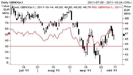 Marknaden handlade under inledningen av veckan upp kvartalet Q1 2011 på ett torrare och kallare scenario men förväntan om mer nederbörd och stigande temperaturer pressade tillbaka marknaden något. Vi noterar en uppgång om 1.7 procent denna vecka där högre spotpriser och oro för fortsatt låg kärnkraftsproduktion balanseras av väderprognoser och lägre tyska elpriser.