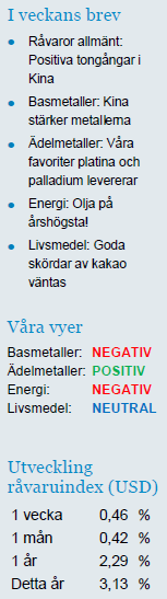 Råvaror allmänt: Positiva tongångar i Kina