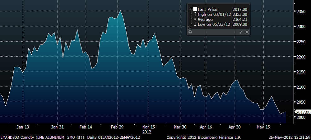 Aluminiumpriset har under veckan gått ned med 2.4 %. Nedgången hittills i år är 2.8 %. Priset ligger i skrivande stund på 2 018 USD/ton. Ett flertal kunder har visst intresse att köpa strax över 2 000 USD-nivån. Cash-cost, det vill säga kostnaden för att få fram ett ton, ligger runt 1 900 enligt flera bedömare. Att kunna säkra in sin exponering på något över 2 000 har lockat in köparna.