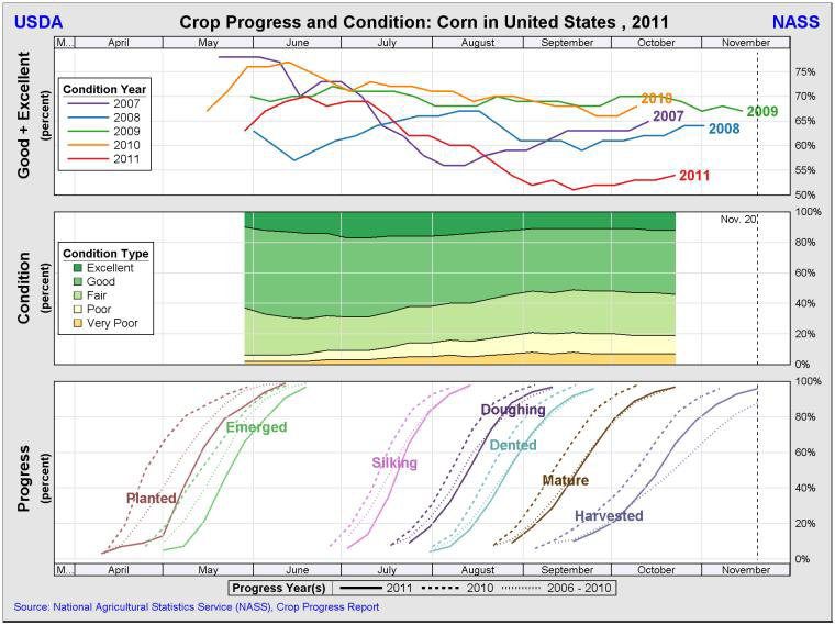 Den amerikanska majsskörden uppgavs i måndagens USDA rapport vara avklarad till 96 procent, upp från förra veckans 93 procent. Vid samma tid förra året var hela 99 procent av skörden avklarad och genomsnittet för de senaste fem åren är 88 procent.