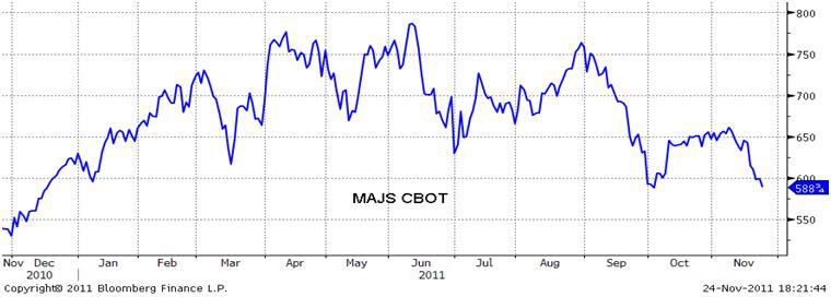 Skuldkrisen och inbromsningen in den globala tillväxten återspeglas även i fallande bomullspriser där priset fallit närmare10 procent de senaste två veckorna. Efterfrågan på världsmarknaden av bomull rapporteras bli 1,7 procent lägre än väntat jämfört med förra månadens siffror och därmed väntas ett stort överskott av bomull. I oktober släppte USDA följande bomullssiffror; Världens export 2011/2012 av bomull väntas stiga med 3 procent, där Australien väntas nå all-time-high, en ökning med 71 procent från tidigare år. Även Brasiliens export väntas stiga kraftigt, en ökning med 90 procent medan USA, världens ledande bomullsexportör, väntas minska sin export med 20 procent p.g.a. lägre lager och hårdare konkurrens om marknadsandel.