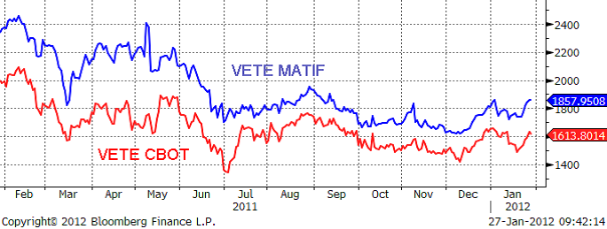 Vetepriserna har stigit kraftigt sedan förra veckan i både Paris och Chicago. Uppgången har fått stöd av stigande priser på majs men även en hel del av rykten om exportrestriktioner för spannmål i Ryssland, Ukraina och Argentina. Putin har tidigare uttalat sig om att exportrestriktioner kan bli aktuellt när den ryska exporten nått omkring 23-25 miljoner ton, vilket den eventuellt gör redan under mars månad. Kom dock ihåg att den ryska spannmålsproduktionen justerats upp med ungefär 3 miljoner ton sedan Putins uttalande. Viktigt vid en jämförelse med förra gången Ryssland införde exportförbud är att de vid det tillfället endast hunnit exportera omkring 5 miljoner ton och tidsmässigt var mycket längre ifrån nästa skörd. En talesman för den ryska regeringen har förnekat att diskussioner om exportbegränsning pågår – av erfarenhet bryr sig dock inte marknaden speciellt mycket om sådana uttalanden.