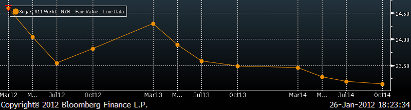 Hälften av världens socker kommer från Brasilien och Indien. Nedan ser vi historiska priser på socker under en femårsperiod där vi kan notera toppriser i början av 2011 som en följd av översvämningarna i Australien och lägre skördar i Brasilien. Sockerpriset har visat sig fortsatt stark trots ökning av produktion i Europa och Asien. Just nu rapporteras det att lägre produktion väntas i Brasilien och Mexico samt att östra Europa och Ryssland befinner sig i början av en torrperiod som skulle kunna påverka produktionen nästa år. Vi kan därför mycket väl se priset ta sig över 25 cents nivå om regnet uteblir och om den globala produktionen blir mindre de kommande månaderna.