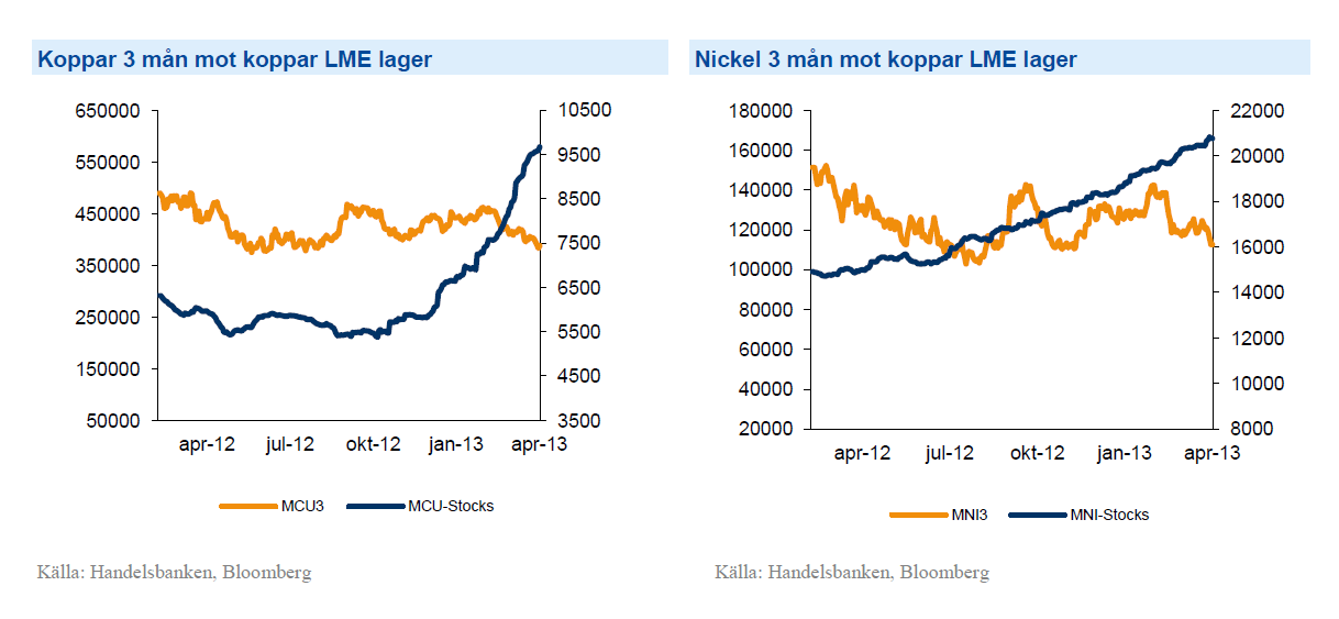 Metallerna tyngs fortsatt höga av lagernivåer (LME:s) där koppar och nickel ligger på historiskt höga nivåer.