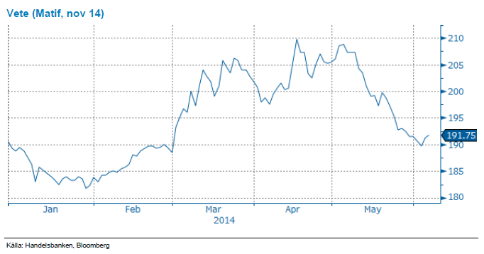 Vetepriset har fortsatt falla och handlas nu på samma nivå som när krisen i Ukraina intensifierades i början på mars. Vi fortsätter att tro på lägre priser då kommande skörd ser ut få alla förutsättningar för att bli stor.