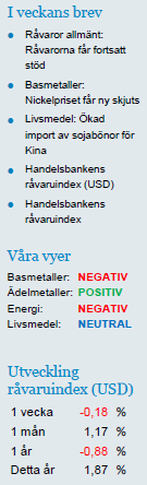 Råvaror allmänt: Råvarorna får fortsatt stöd