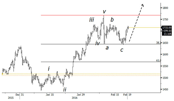 Guldpriset har fallit något under veckan när börsen rusat men har fortfarande stigit över 15% under 2016. Amerikanska centralbanken har tagit notis om senaste marknadsoron och marknaden har nu helt tappat tron på fler räntehöjningar det här året. Ytterligare räntehöjningar från Fed kan bromsa en uppgång för guldpriset, så en mindre hökaktig amerikansk centralbank är positivt.