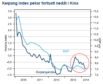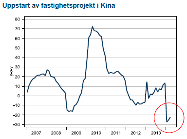 I maj kunde en svag uppgång i Kinas inköpschefsindex skönjas. Ledarnas serie av mini-stimulanser ser ut att ge viss effekt. Detta är dock att betrakta som en tillfällig effekt för att stabilisera ekonomin och ingen ”game changer” för utvecklingen i kinesisk ekonomi som fortsatt kommer att se tillväxten falla under kommande år i linje med den politik som ledarduon Li och Xi slagit in på sedan de tog sina platser, ett drygt år tillbaka. De anslagna stimulanserna kommer inte hindra sentimentet från att försämras igen. Speciellt utsatt är fastighetssektorn som varit kärnan i tillväxten och efterfrågan på koppar. Fastighetspriserna föll i maj för första gången på två år och uppstart av nya fastighetsprojekt är mer än 20 % under nivån för ett år sedan.
