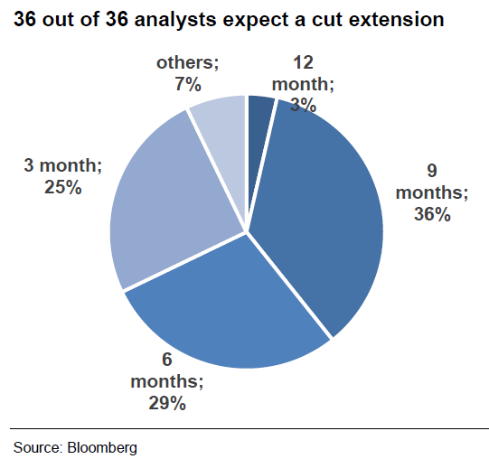 According to a Bloomberg survey, oil traders and analysts unanimously expect OPEC and Russia to prolong their production cuts on Thursday. Behind the scenes, however, it seems as though Saudi Arabia and Russia are still debating what course to follow, particularly regarding the duration of the extension.