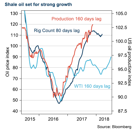 In our model, which has served us well since the cycle collapse in 2014, we see around an 80-day lag from peak to trough in prices, before a new activity direction in rig count, and we see around 80 more days before an impact on production. In other words, a 160-day lag in production from a new price direction. After the recent oil price rally, rig counts will start to increase in our model, and early data are already confirming this new trend, which will have a negative impact on oil prices.