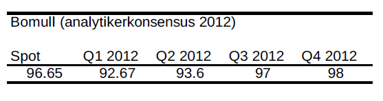 - Efter kraftiga fall under 2011 har bomull sedan november 2011 återhämtat sig ordentligt.