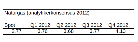 - Medeltemperaturen har varit högre än vanligt i USA. Däremot spås tillgången av naturgas mer än halveras i USA under 2012. 51% av USAs hushåll använder naturgas för uppvärmning.