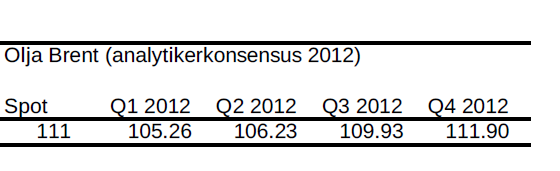 - Brentoljan fortsätter sin konsolidering mellan 102 och 115 dollar. Oljan blir intressant att köpa om motståndet 115$ bryts.