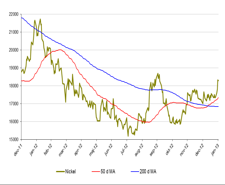 - Nickel återhämtade nästan hela förra årets nedgång under januari. Upp 7,5 % totalt.