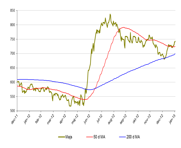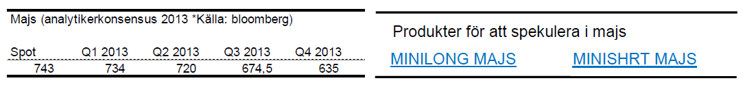 - Uppgången kan dämpas då det spås att majsskörden kan bli mycket stor under sommaren 2013.