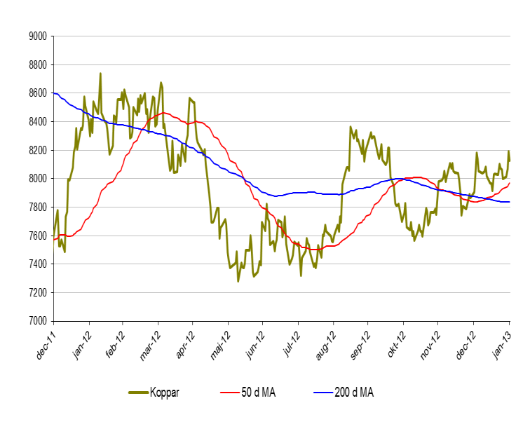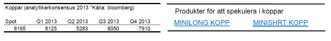 - Kopparproduktionen förväntas öka med cirka 3 % under 2013 till följd av ökad efterfrågan ibland annat Kina och Indien.
